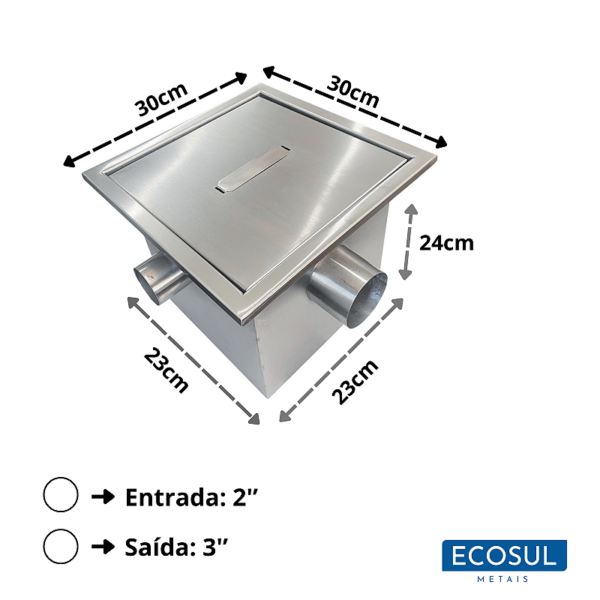 Caixa De Gordura em Aço Inox 304 30x30x25cm