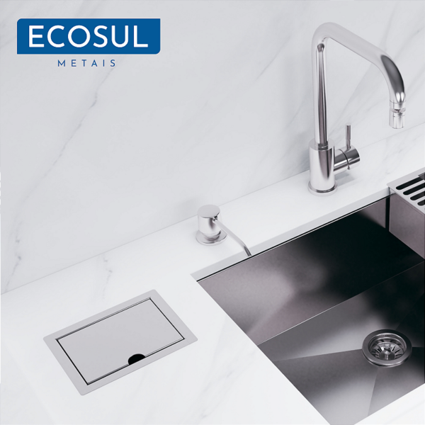 O Porta Esponja e Sabão em Barra Inox Embutir Ecosul foi desenvolvido para quem busca praticidade, organização e um acabamento sofisticado na cozinha.